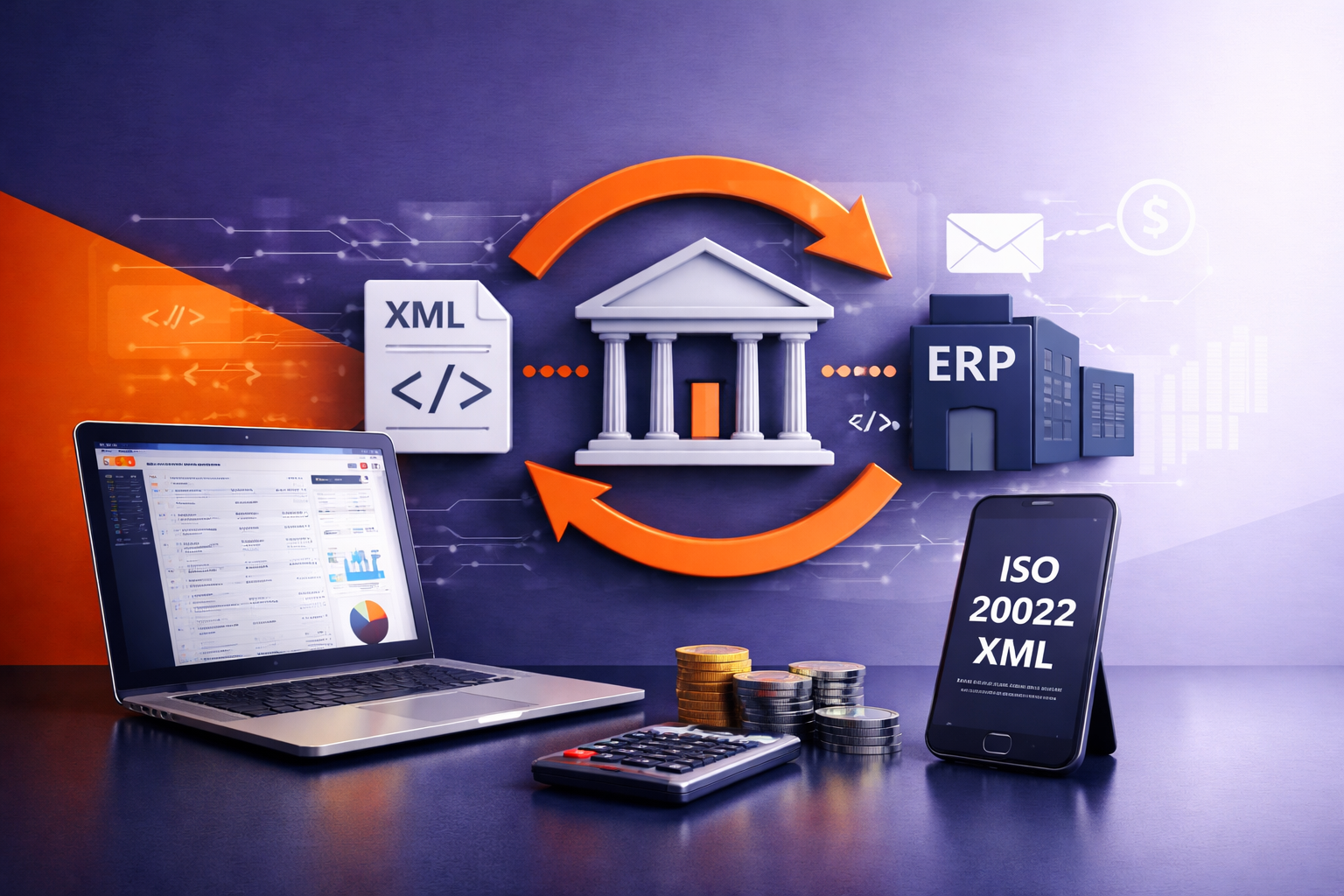 Risinājums palīdz uzņēmumiem automatizēt maksājumu apstrādi un bankas datu apmaiņu, izmantojot ISO 20022 XML formātu, kas ir starptautiski izmantots banku datu apmaiņas standarts.